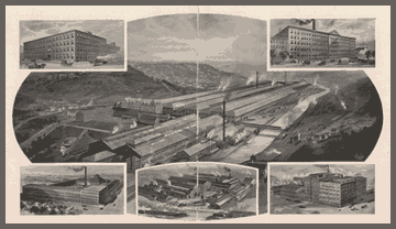 Organized in 1881, the Westinghouse Machine Company was devoted primarily to the manufacture of gas and steam engines, turbines and mechanical stokers. The main works were located at East Pittsburgh at a property covering nearly 50 acres. With a working floor space of 20.4 acres, the company employed approximately 3,500 men by 1905.