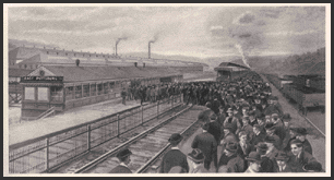Wilmerding is fortunate in having few foreigners and negroes of a low type among its population. On the contrary, the standard of intelligence and conduct in general is unusually high, for the air brake works employ skilled mechanics and other men of more than ordinary mental acquirements. The great majority of the bread-winners draw good wages, so then in prosperous times no town presents a livelier or more contented appearance than Wilmerding. So substantial has been the growth of the town that within the last year or two whole rows of dwellings have been built across Turtle Creek to the northwest of the main part of the borough. Along the creek is the Pennsylvania railroad, which runs numerous trains stopping at Wilmerding. During the last year the company built at great expense a fine brick-lined tunnel affording access from the station under the tracks to the main part of the town. Between the tracks and the creek are the great works of the Westinghouse Air Brake Company, and its neat, handsome office building, in which the superintendent and others stay. Other officials and an army of clerks have their quarters in the big castle-like structure opposite the park, noted previously.