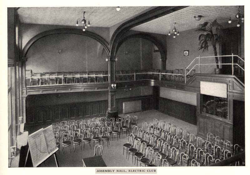 The Tonnaleuka club has a large [club] house on Marguerite Avenue, the handsomest street in the town. It was organized three years ago last May for the purpose of providing desirable boarding quarters for the many young Westinghouse employees, the boarding house keepers of Wilmerding having become too independent and careless of the needs of their patrons to suit the men's taste. The Glen hotel building was secured from the Westinghouse company, the latter granting six months rent free to help the project along. About 25 members joined the club. The aim was not to form a club pure and simple, but simply to provide desirable meals and living quarters. So it comes about that the big hotel building is composed of living rooms, a dining room, smoking room and other quarters, to the number of 28 or 30, but no bar room, library, billiard room, bowling alley or other features of the ordinary club of the better class. There is indeed no need for a library, as the Y.M.C.A., a square away, has an excellent one. Men of all professions and callings are members, some being on the active list and others on the associate list.