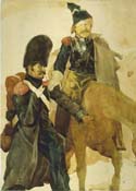 This painting is at the heart of a series of studies on the misfortunes of war and Napoleon's retreat from Russia, which was to result in Géricault's most famous lithograph, Return from Russia. In the middle of the icy plain a one-armed grenadier leads the exhausted horse of a blind cuirassier. The pain, resignation, and despair on their faces summarize this horrible disaster, survived by only a handful of Napoleon's soldiers.