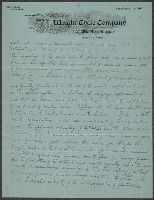 W.J. Tate to Wilbur Wright, August 18, 1900. Page 2. Holograph letter Wright Papers, Manuscript Division, Library of Congress (55)