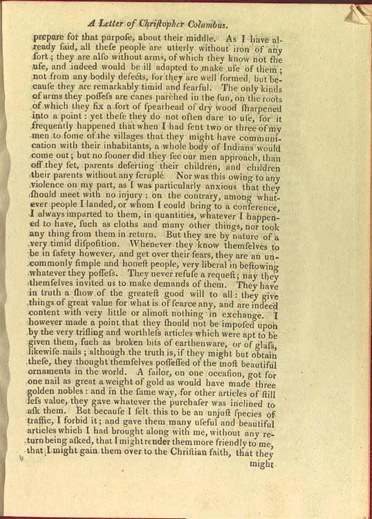Christopher Columbus. Epistola de insulis nuper inventis. Printed letter, Rome: 1493. Page 1 (Latin). Rare Book and Special Collections Division, Library of Congress. Purchased, 1946 (5.4)