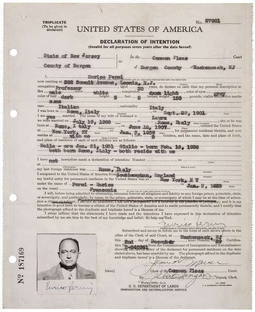 Four years earlier, Fermi had received the Nobel Prize for Physics. Like so many intellectuals who had left fascist Europe, Fermi came to the United States and worked at Columbia University.