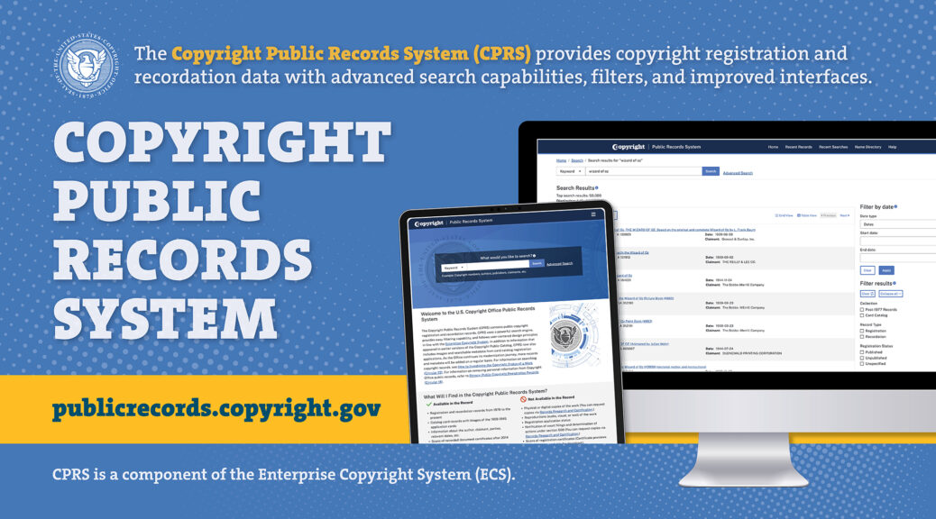The U.S. Copyright Office today announced that the Copyright Public Records System has replaced its Online Public Catalog. The Copyright Public Records System provides copyright registration and recordation data with advanced search capabilities, filters, and improved interfaces for public users and Copyright Office staff. The system is the second component of the Copyright Office’s Enterprise Copyright System to be made publicly available. Since the…